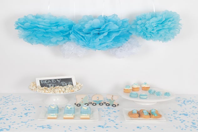 De kosten voor een high tea babyshower bedragen € 37,50 per persoon. Compleet met versiering en aangepast aan de kleuren.